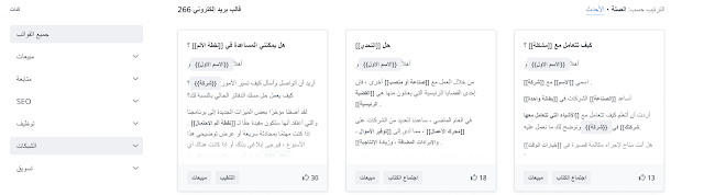 ان نموذج الايميل يكون حسب اختيار الفئات وكما ترى ان لديك اكثر من 266 قالب في الموقع بامكانك اختيار القالب ونسخه وبعدها تضعه في الايميل سوف ندخل على احد القوالب حتى ترى كيف يكون شكله بالعربي.